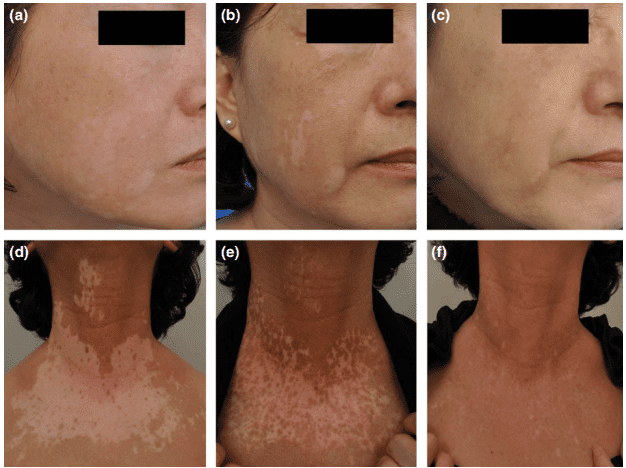 NB-UVB (tia cực tím dải hẹp 311-313 nm) được chiếu 2-3 lần mỗi tuần, cách ngày. Bệnh nhân thường cần 3-6 tháng để bắt đầu thấy phục hồi sắc tố, và có thể điều trị đến 12 tháng để đạt hiệu quả tối đa.