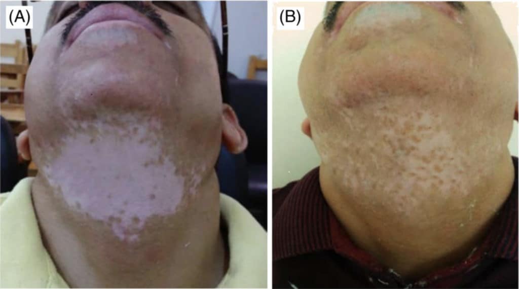 Hàng loạt những phương pháp điều trị đã ra đời với mục tiêu cải thiện màu da của người bệnh, bao gồm: thuốc uống, thuốc thoa chứa corticosteroid, liệu pháp ánh sáng với tia UVB phổ hẹp, laser excimer, thuốc ức chế kênh calcineurin, thuốc ức chế Janus kinase như tofacitinib, hoặc phương pháp ghép tế bào sắc tố tự thân.